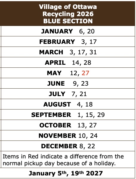 Village of Ottawa Recycling Schedule